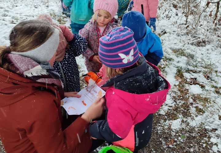Bei unseren Waldwochen begleitet uns Fuchsi und erklärt den Kindern die verschiedenen Aufgaben und unterstützt sie bei der Bewältigung.