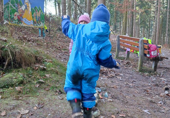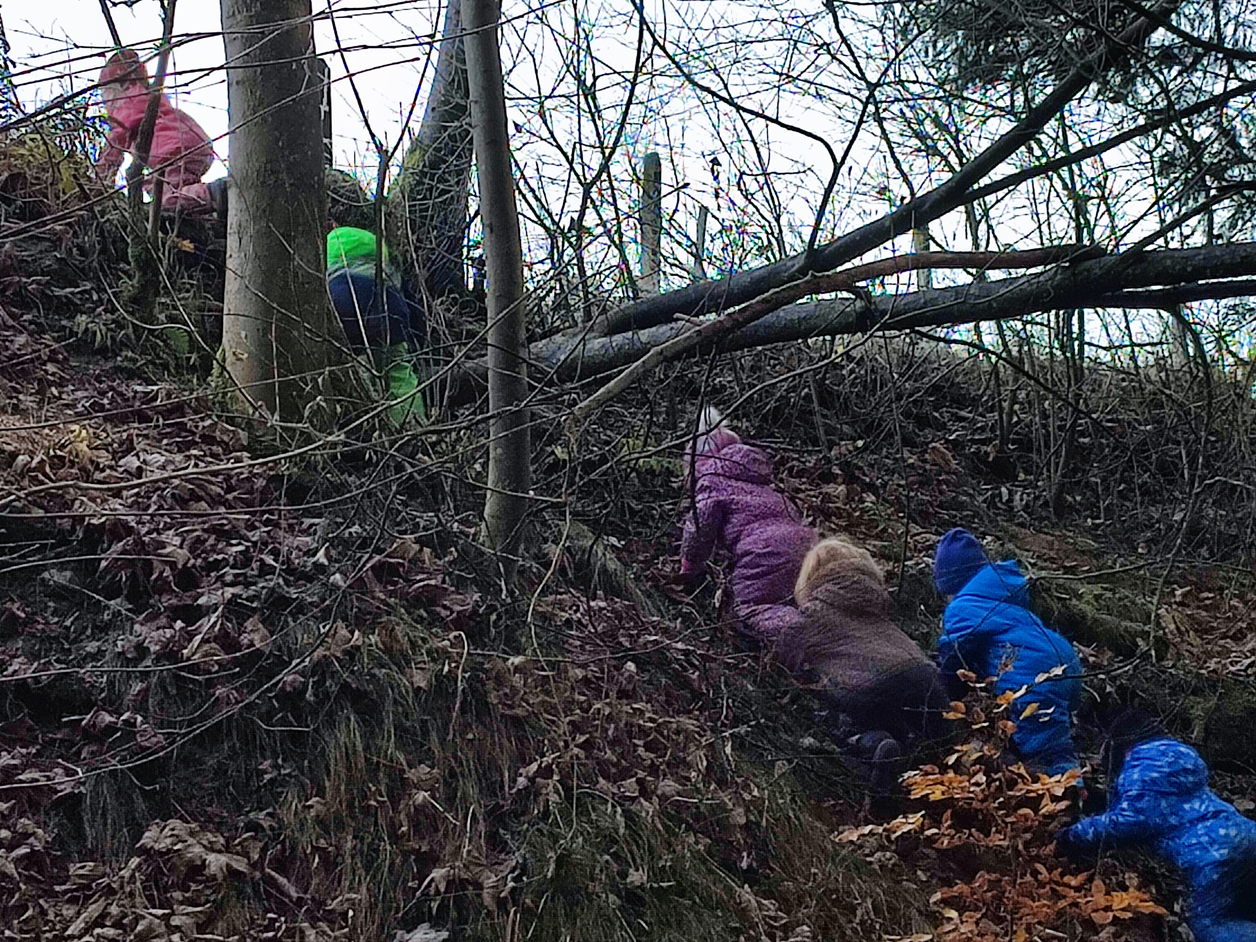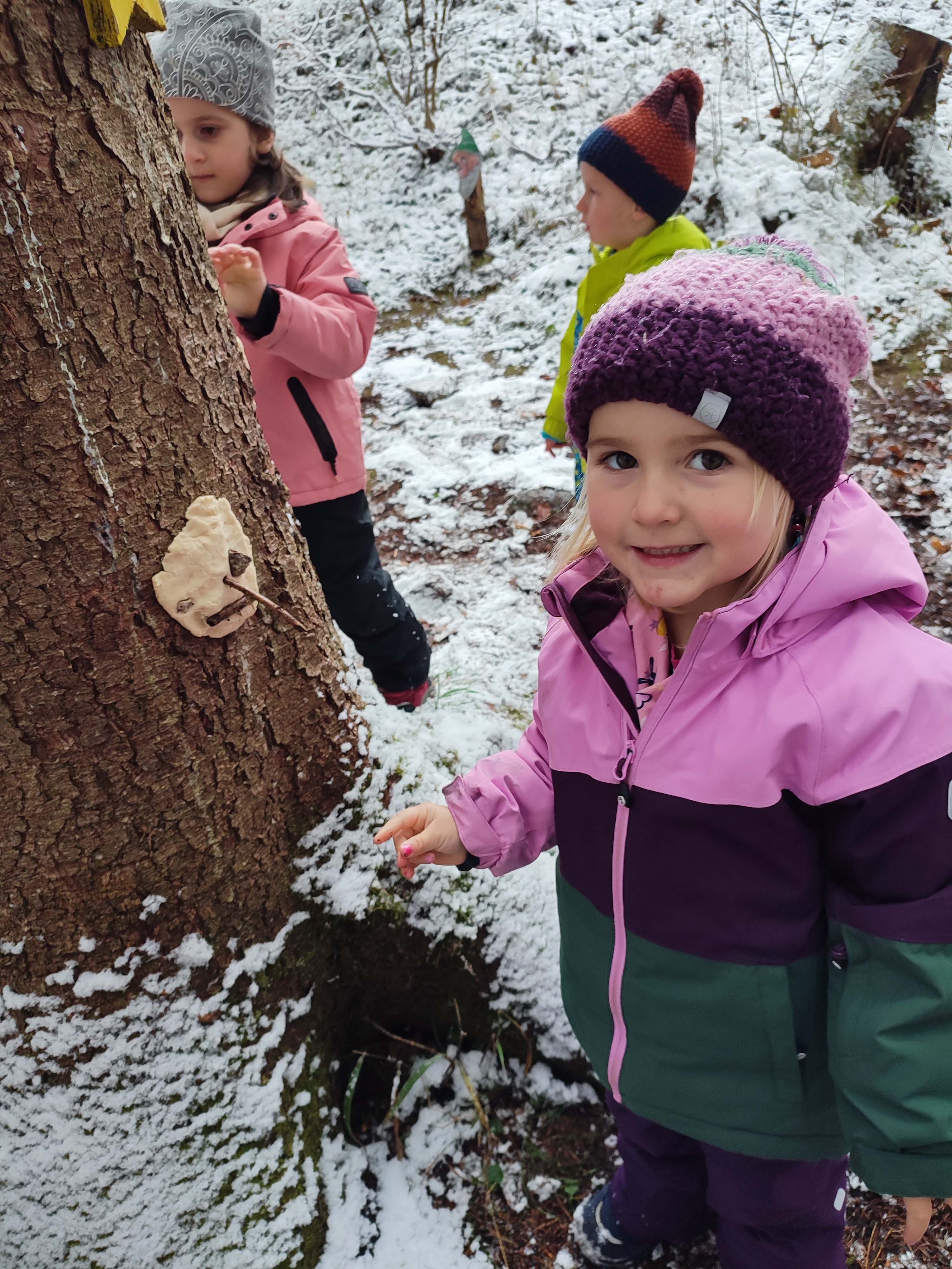 Die Bewegung im Wald fördert auf natürliche Weise die Motorik, das Gleichgewicht und die Ausdauer der Kinder. Gleichzeitig stärkt sie die Wahrnehmung, das Selbstvertrauen und die Freude an der Natur. Da diese Erfahrungen für die kindliche Entwicklung besonders wertvoll sind, findet zu jeder Jahreszeit eine Waldwoche statt.